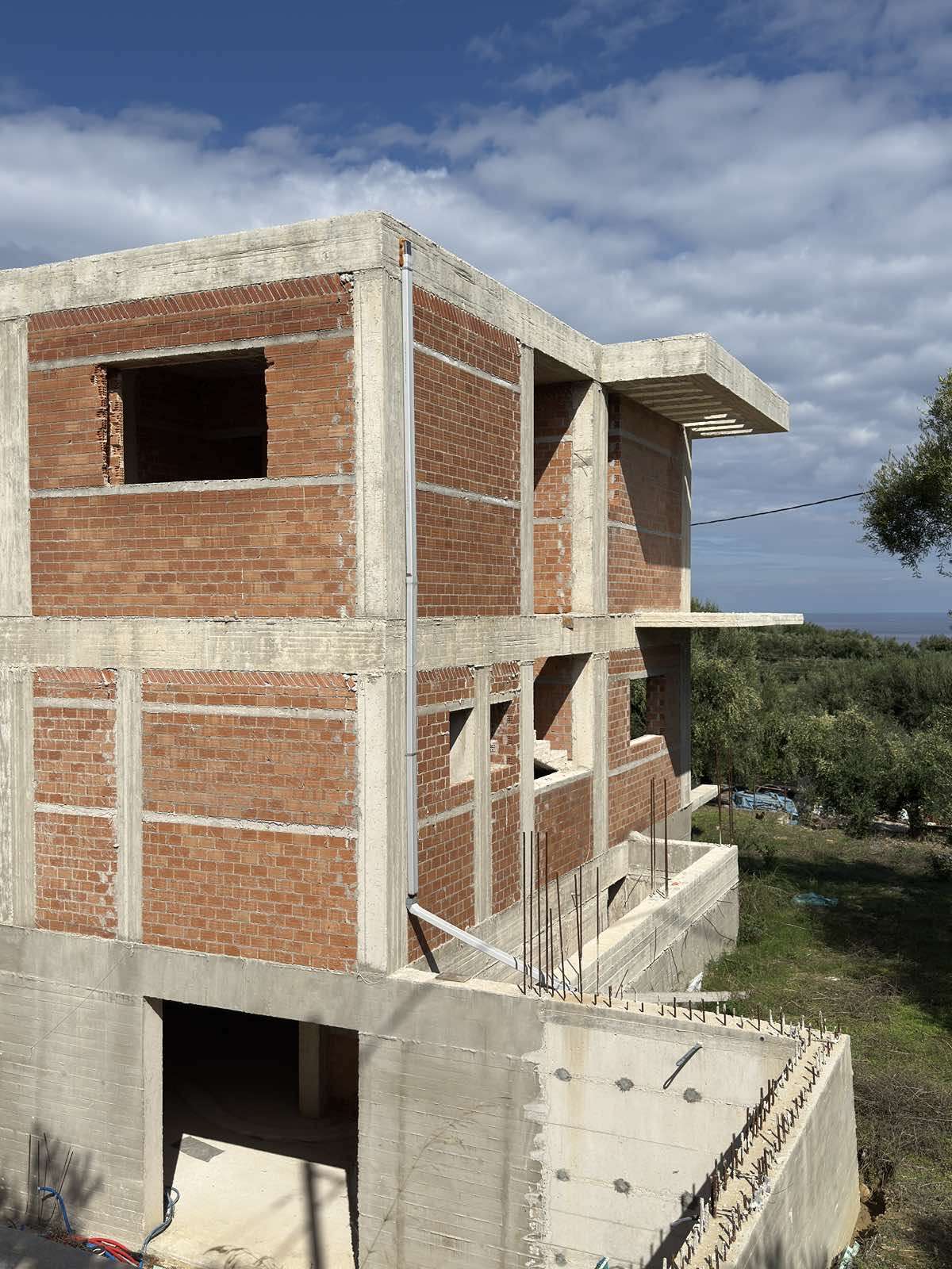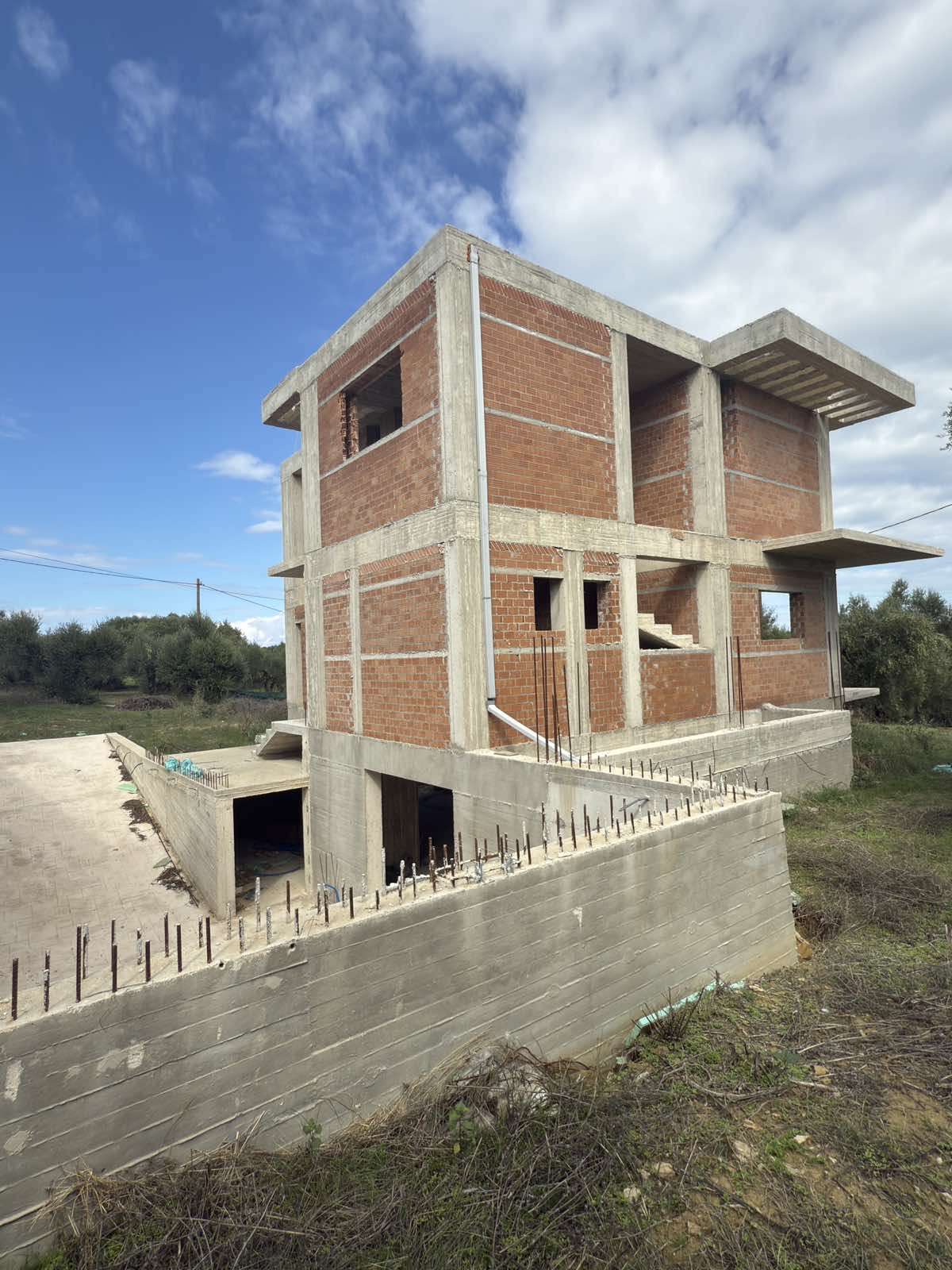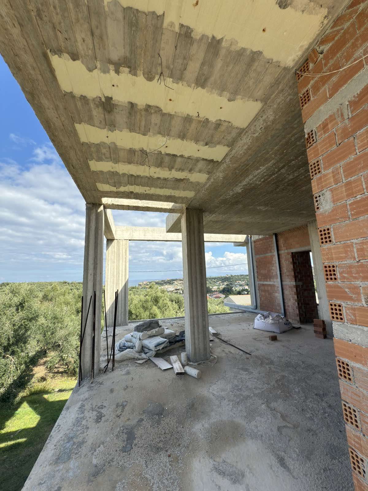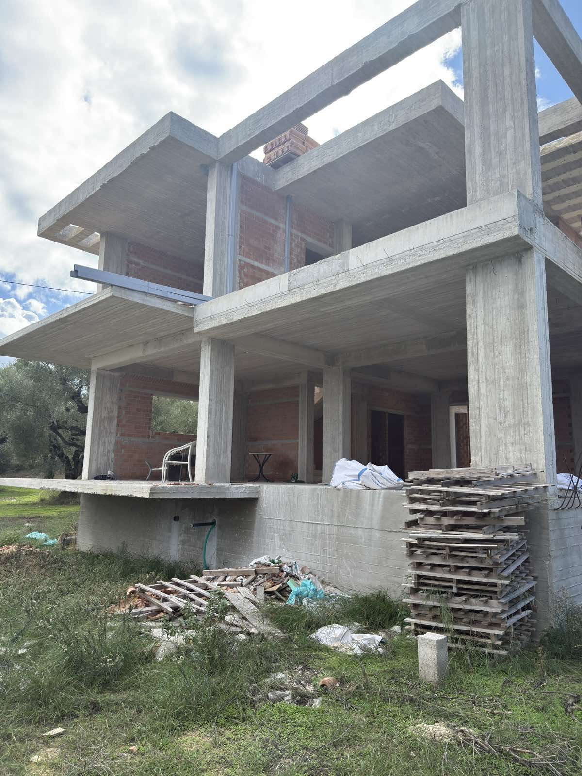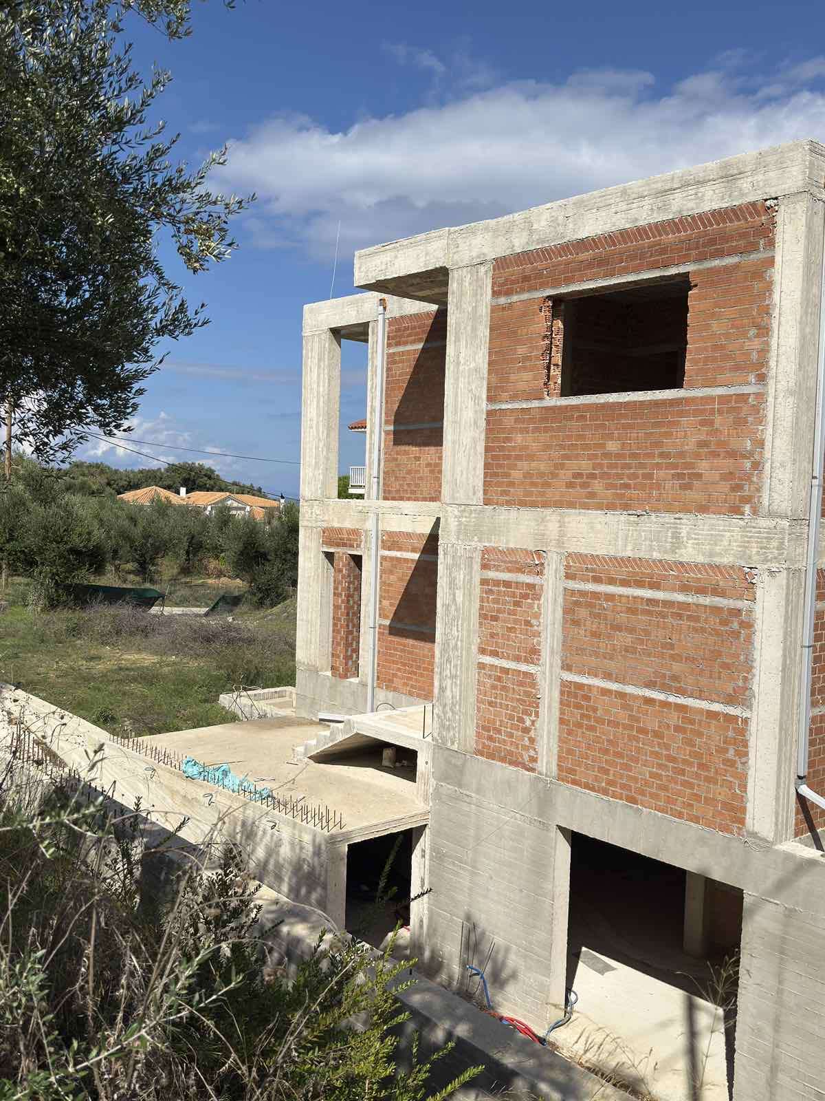 Unfinished villa with an area of 275 sq m, in a tourist area of Zakynthos with panoramic sea views, for sale. The villa is in the masonry stage and has been built on a plot of 1.000 sq m within the settlement, on a hill. The building is three levels and consists of a semi-basement of 110 sq m which includes an apartment with two bedrooms, kitchen, living room, bathroom and storage room as well as an internal staircase that connects to the maisonette of the 1st and 2nd floors, which is a separate residence and has an area of 165 sq m, with a large living room, kitchen and 1 bathroom on the 1st floor and 3 bedrooms, 2 bathrooms and large verandas on the 2nd floor. Price: €600.000