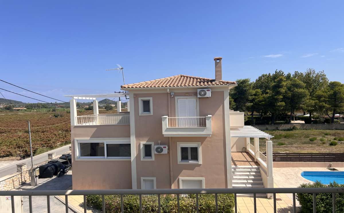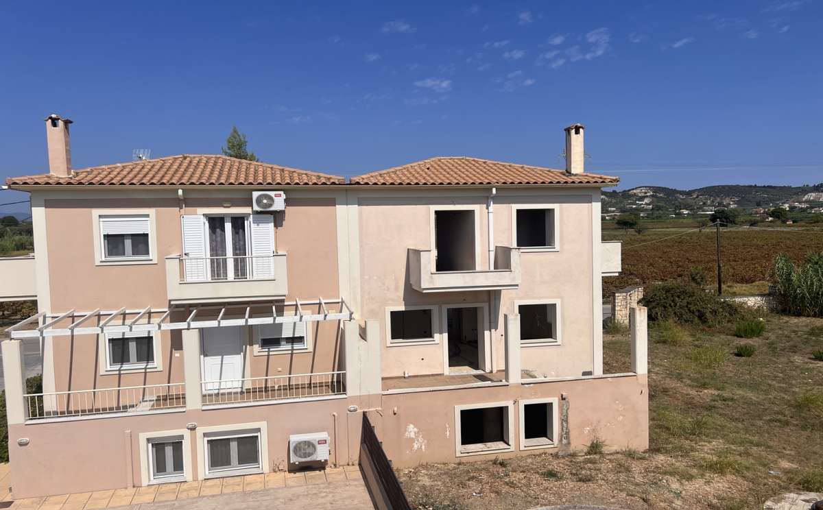 Detached house fully furnished in Zakynthos in an area of 150sqms with swimming pool, for sale. The detached house is located in a plot of 9.150sqms where a complex of 21 houses has been built and consists of 4 bedrooms, 2 bathrooms and living-room with kitchen, ware house and big verandas with view. It has air conditions to all the rooms and waiting for radiators. Distances: 7km from the city and the airport, 5km from the sea. Price: €260.000